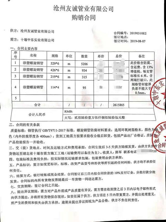 湖北十堰中東實(shí)業(yè)有限公司與我公司簽訂的管廊工程用內(nèi)外涂塑復(fù)合鋼管合同,我公司確保質(zhì)量為原則,保障工期為根本,贏得了客戶的好評,通過我們不斷的努力十堰管廊工程我們又合作的另外兩個(gè)標(biāo)段